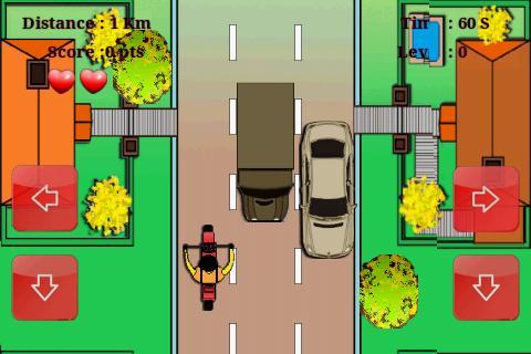 首先,您将有三个生命。如果您撞车,您将失去一辆自行车,但每次提前5个级别时都会获得一辆。您的摩托车速度将随着每个级别的增加。